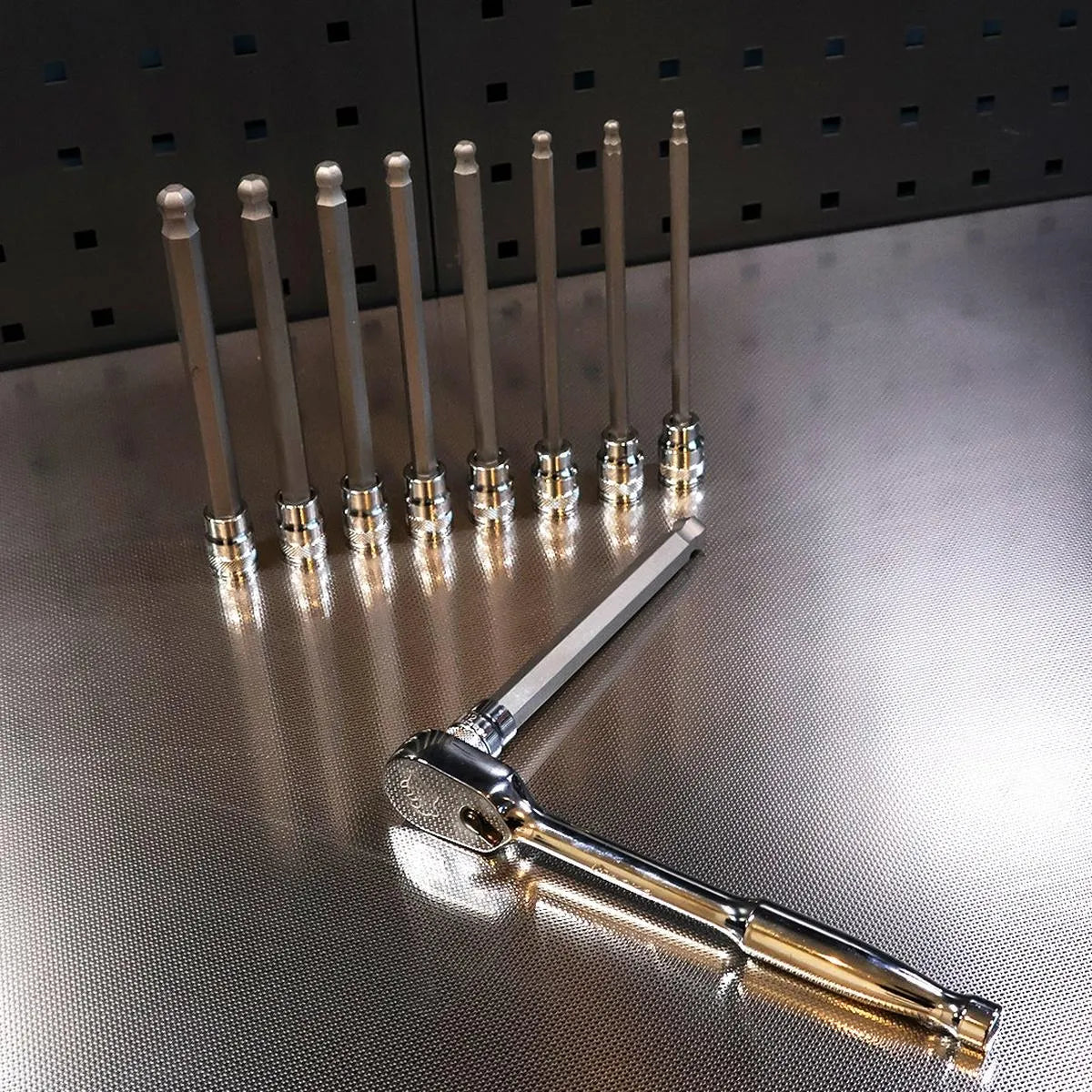 9-Piece 3/8" Drive Long Ball Point Hex Bit Socket Set | 1/6 Drawer EVA Foam